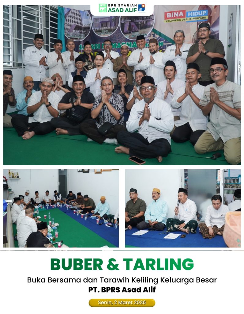 Sukorejo, 2 Maret 2026 – Keluarga besar BPRS Asad Alif menggelar kegiatan Buka Bersama (Buber) dan Tarawih.Bertempat di Kantor Pusat BPRS Asad Alif. Kegiatan ini menjadi momentum mempererat silaturahmi sekaligus memperkuat sinergi antar elemen dalam keluarga besar perusahaan. Acara ini dihadiri oleh karyawan kantor pusat dan kantor kas, perwakilan pemegang saham, serta perwakilan dari beberapa kepala unit usaha yang berada di bawah naungan PT. Bina Hidup Group. Suasana penuh kehangatan dan kebersamaan terasa sejak menjelang waktu berbuka hingga pelaksanaan salat tarawih berjamaah. Setelah berbuka puasa bersama, kegiatan dilanjutkan dengan salat Magrib, Isya, dan Tarawih berjamaah sebagai bagian dari program Tarawih Keliling keluarga besar BPRS Asad Alif. Melalui kegiatan ini, manajemen berharap tercipta semangat spiritual yang semakin menguatkan integritas, profesionalisme, dan pelayanan prima kepada...